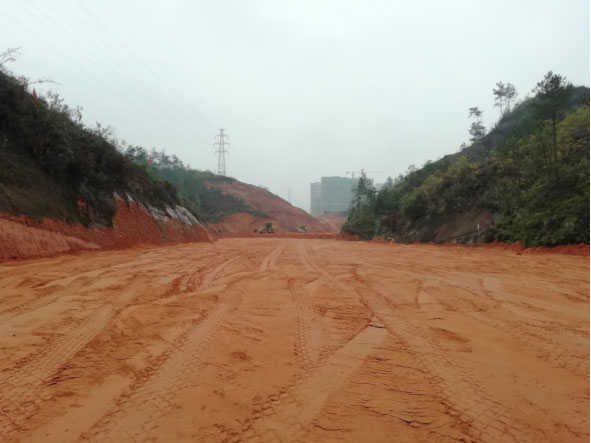 本工程所處區(qū)域地勢(shì)較為起伏,山丘林立,沿線主要為山地、魚塘、耕地、林地、場(chǎng)平地及局部民房等。相交道路除虎民路、環(huán)城路為現(xiàn)狀道路(金山大道在建)外,其他道路均為規(guī)劃道路(未建)。